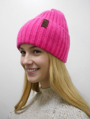 Стильная тёплая удлинённая двойная шапка с кожаной пряжкой